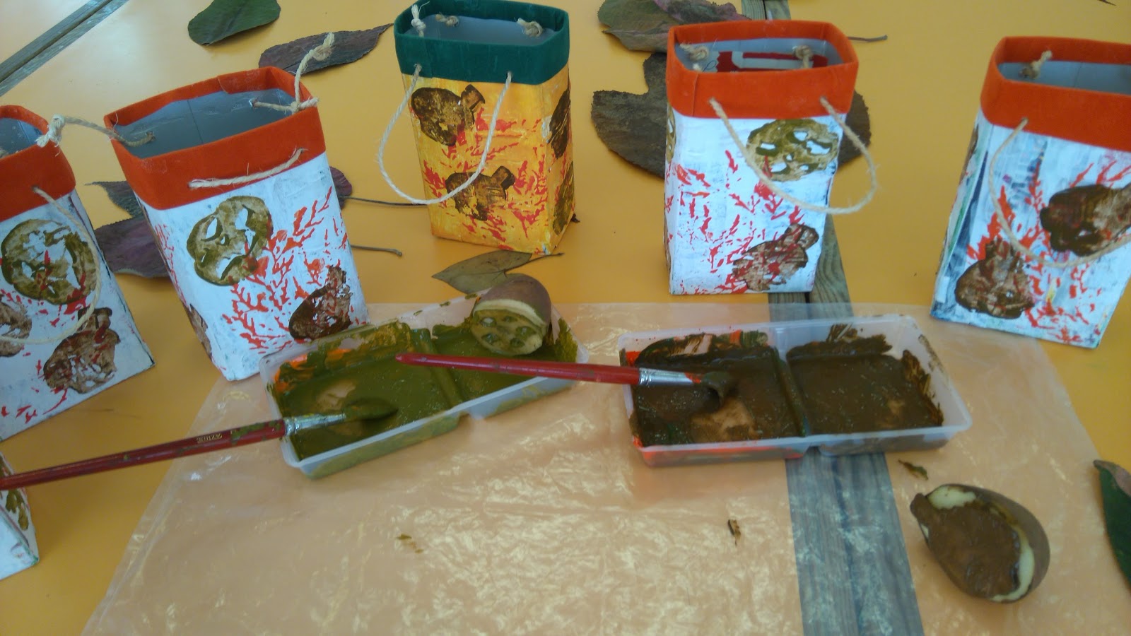 decoração final foi utilizada a técnica da carimbagem com elementos naturais e
