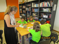 No âmbito da comemoração do Dia das Bibliotecas Escolares, a escritora Anabela. Apresentou um conto "Os opostos" do livro da sua autoria. Completou ainda com umas fichas sobre o tema.