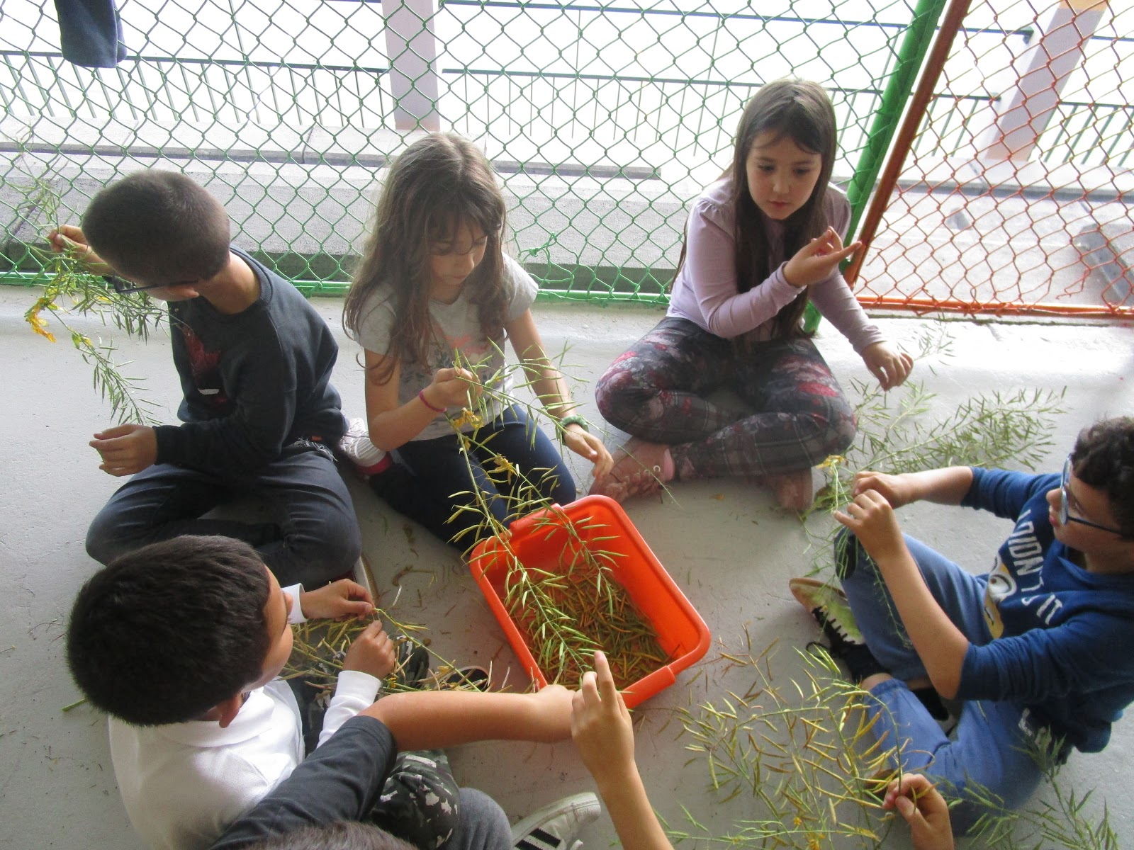 Também na horta horizontal plantaram duas variedades de alface e semearam algumas beterrabas. Regaram os produtos das hortas horizontal e vertical da escola. Outra atividade aliciante foi a separação das sementes da flor das couves, para posterior secagem e nova plantação nas hortas.